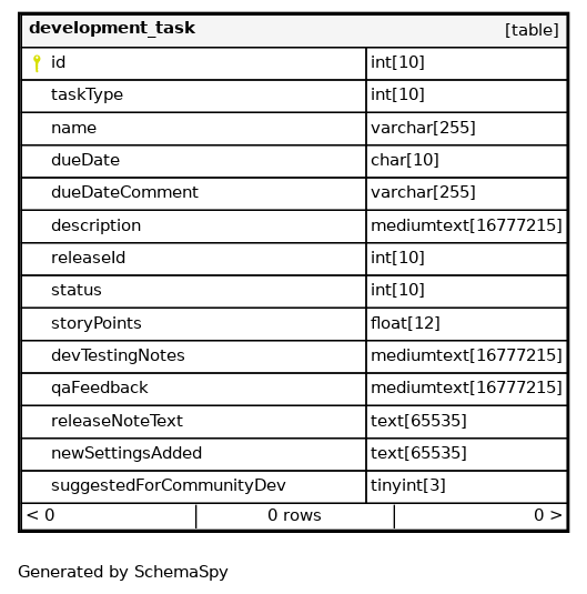 | devTestingNotes | MEDIUMTEXT | 16777215 | √ | NULL |