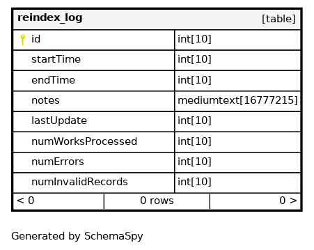 | Column | Type | Size | Nulls | Auto | Default | Children | Parents | Comments |