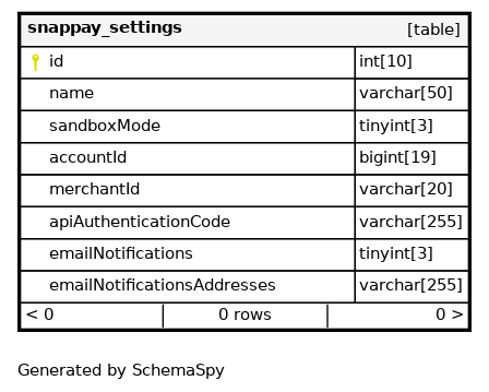 | snappay_settings_s_pk | Primary key | Asc | id |