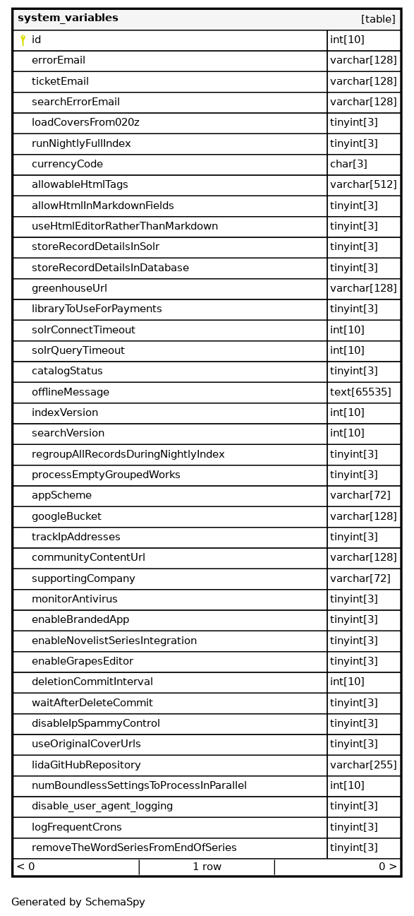 | Column | Type | Size | Nulls | Auto | Default | Children | Parents | Comments |