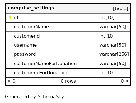 | comprise_settings_s_pk | Primary key | Asc | id |