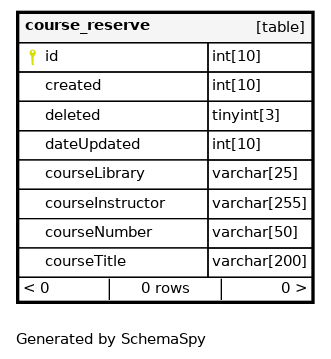 | course | Must be unique | Asc/Asc/Asc/Asc | courseLibrary + courseNumber + courseInstructor + courseTitle |