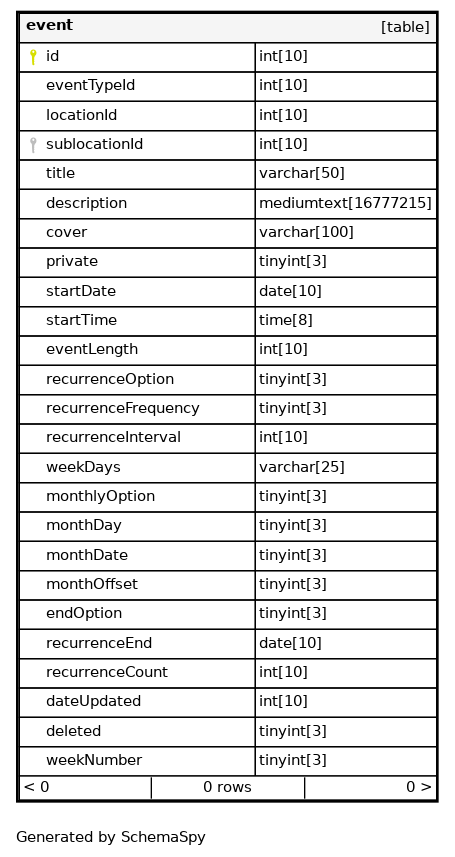 | eventTypeId | INT | 10 | null |