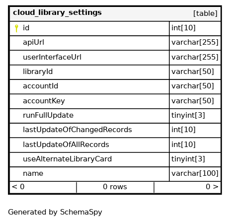 | cloud_library_settings_s_pk | Primary key | Asc | id |