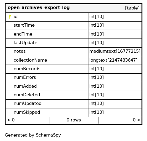 | open_archives_export_log_s_pk | Primary key | Asc | id |