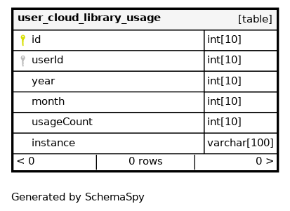 | user_cloud_library_usage_s_pk | Primary key | Asc | id |