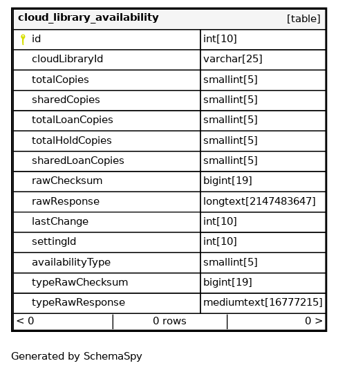 cloud_library_availability_s_pk Primary key Asc id