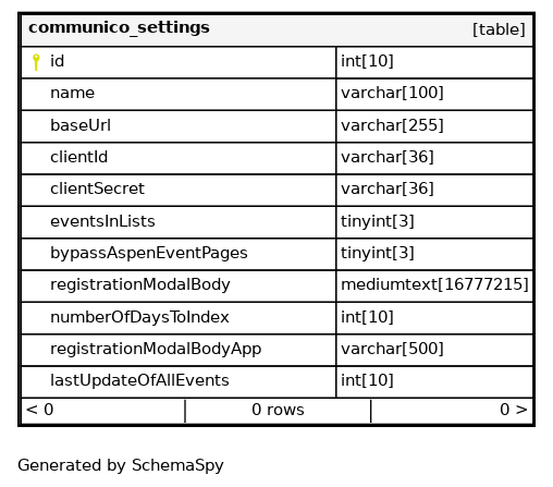 | Column | Type | Size | Nulls | Auto | Default | Children | Parents | Comments |