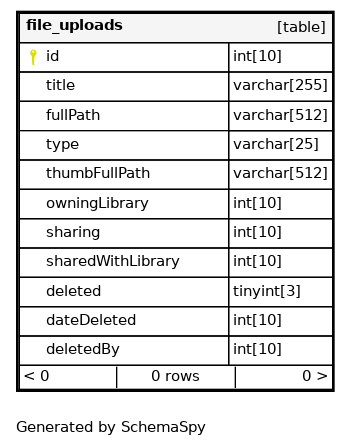 | Column | Type | Size | Nulls | Auto | Default | Children | Parents | Comments |