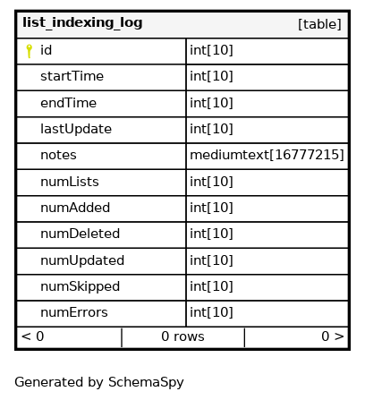 | list_indexing_log_s_pk | Primary key | Asc | id |