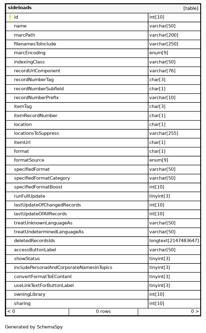 | sideloads_s_pk | Primary key | Asc | id |