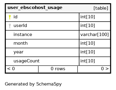 | user_ebscohost_usage_s_pk | Primary key | Asc | id |