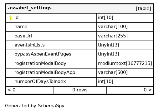 | assabet_settings_s_pk | Primary key | Asc | id |