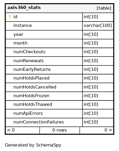 | axis360_stats_s_pk | Primary key | Asc | id |
