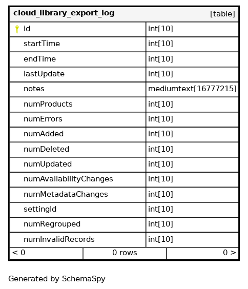 | cloud_library_export_log_s_pk | Primary key | Asc | id |