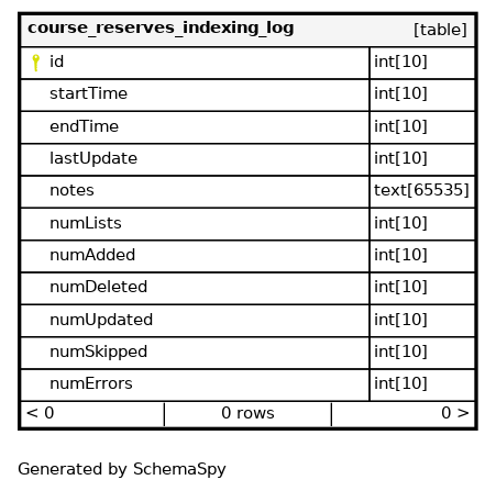 | course_reserves_indexing_log_s_pk | Primary key | Asc | id |