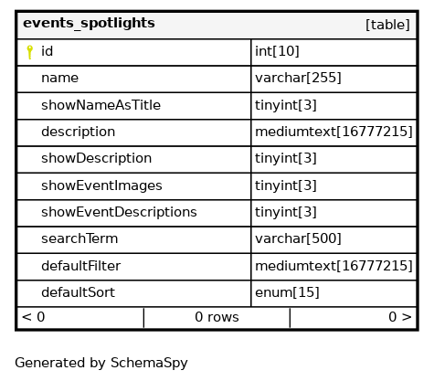 | events_spotlights_s_pk | Primary key | Asc | id |