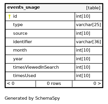 | Column | Type | Size | Nulls | Auto | Default | Children | Parents | Comments |