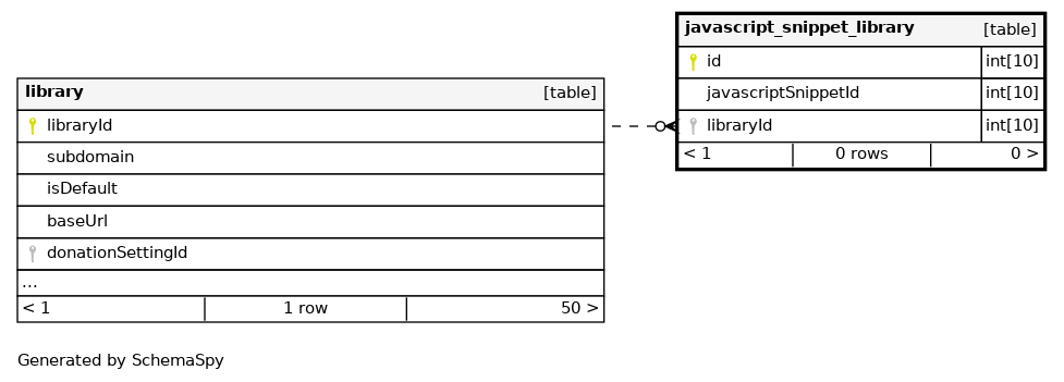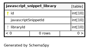 | javascriptSnippetLibrary | Must be unique | Asc/Asc | javascriptSnippetId + libraryId |