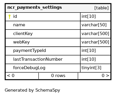 | ncr_payments_settings_s_pk | Primary key | Asc | id |