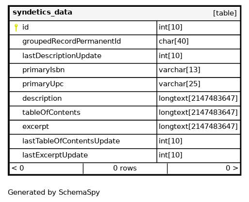 syndetics_data_s_pk Primary key Asc id