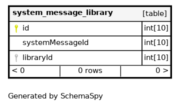 | systemMessageLibrary | Must be unique | Asc/Asc | systemMessageId + libraryId |