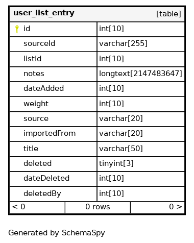 | user_list_entry_s_pk | Primary key | Asc | id |